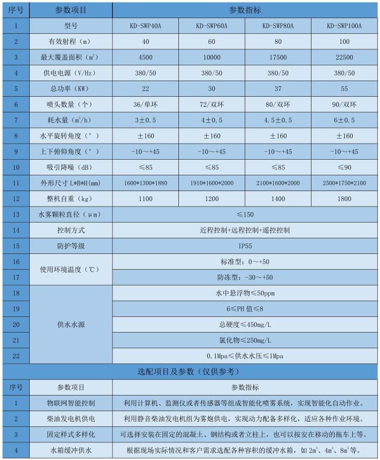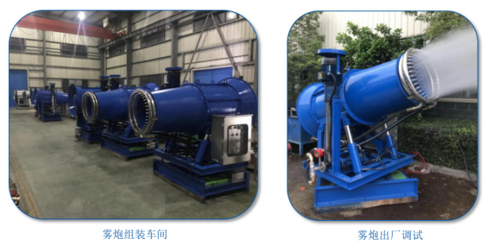我公司自主研發(fā)設計的“KD-SWP系列風送式噴霧機”,簡稱“霧炮”,是通過高壓水泵將水霧化成與粉塵大小相接近的霧滴后,在軸流風機的作用下,將水霧拋射到遠方。粉塵顆粒與霧炮產(chǎn)生的霧滴顆粒產(chǎn)生接觸后變得濕潤,被濕潤的粉塵顆粒逐步吸收附近的粉塵顆粒而逐漸凝結(jié)成團,并在自身重力作用下沉降,達到較好的抑塵效果。