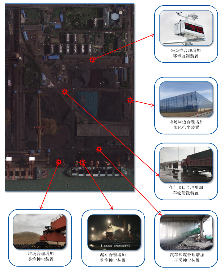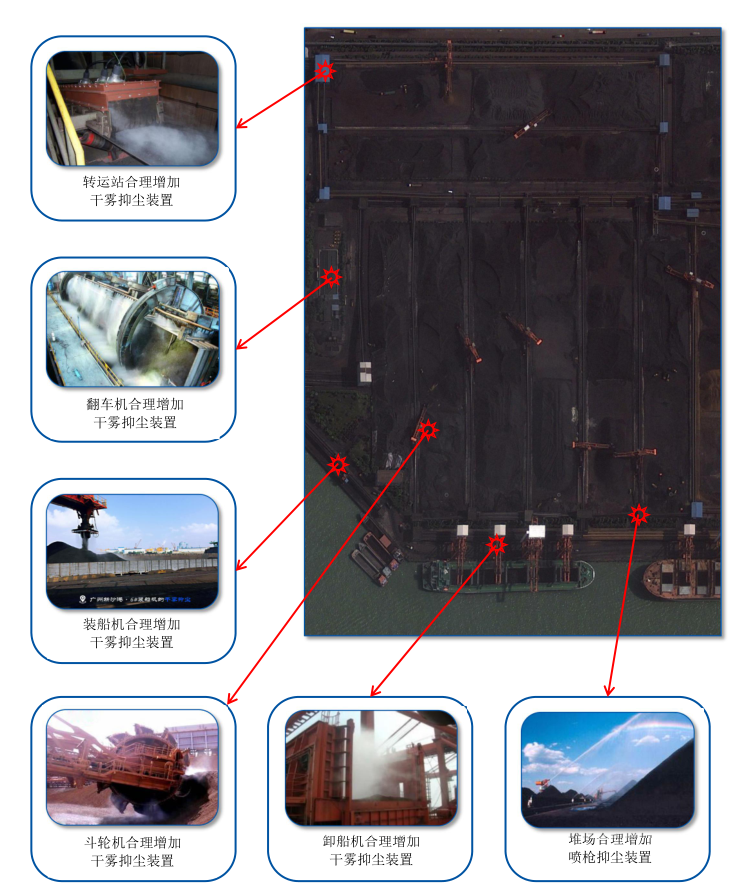 工業(yè)源頭的治理:采用系統(tǒng)化解決方案,將氣象監(jiān)測(cè)站、防風(fēng)抑塵網(wǎng)、干霧抑塵、霧炮抑塵、噴槍抑塵、及汽車洗輪機(jī)等裝置有效的結(jié)合,最終實(shí)現(xiàn)對(duì)無(wú)組織粉塵的源頭治理。