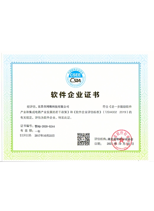 2017年11月宜昌鴻錦科技有限公司獲得高企證書。