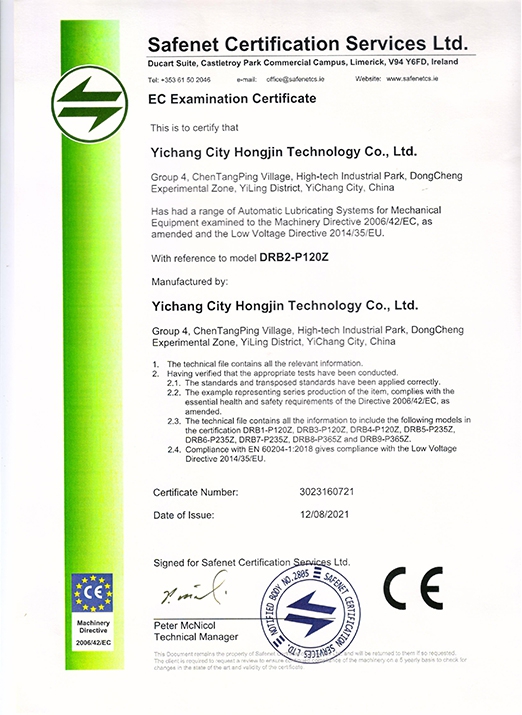 2016年9月宜昌鴻錦科技有限公司獲得CE認(rèn)證證書。